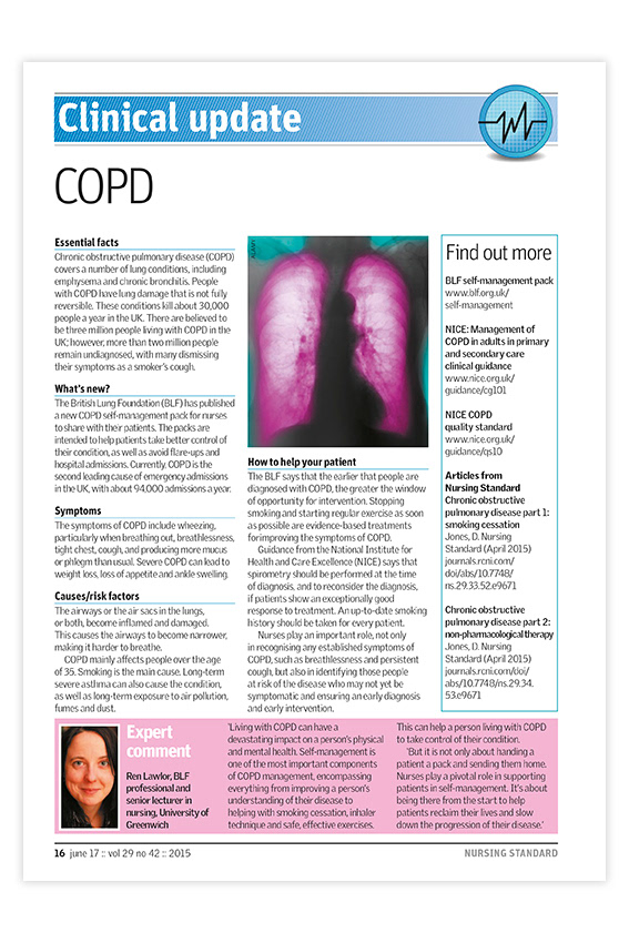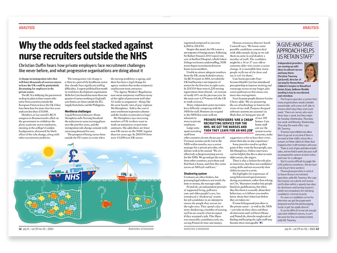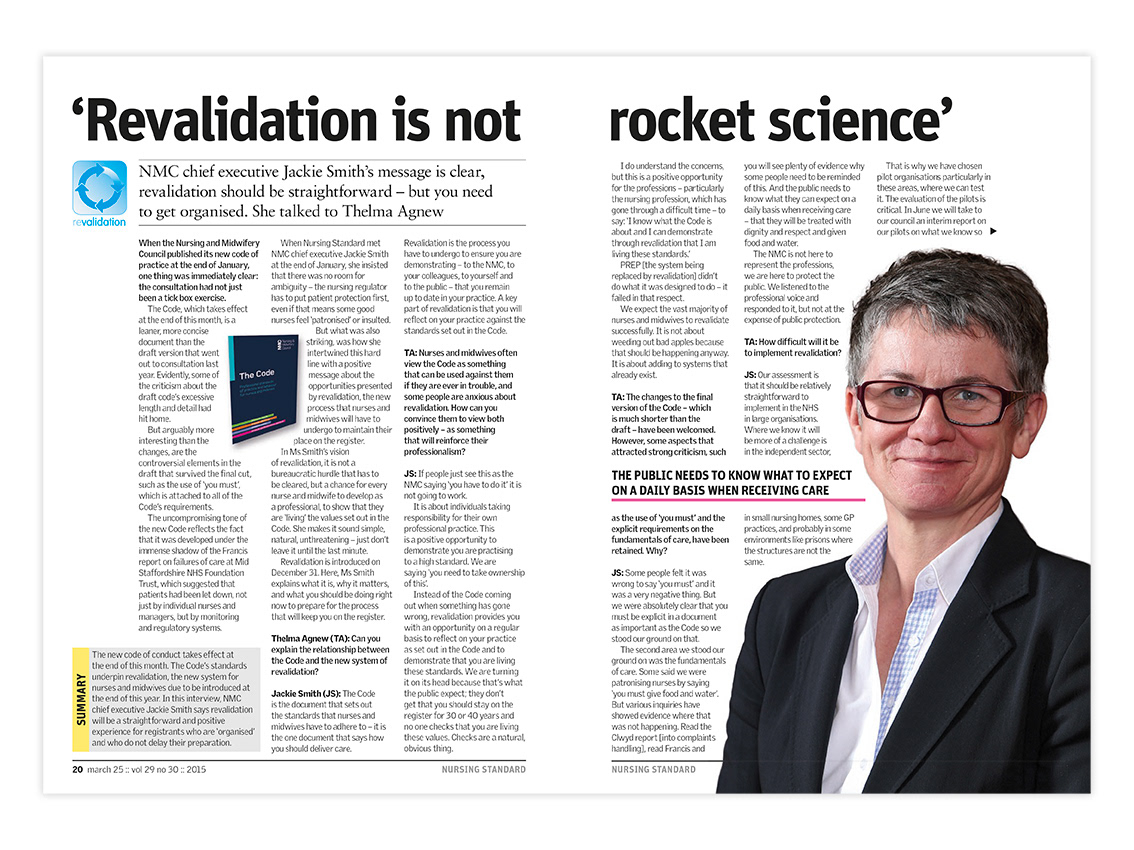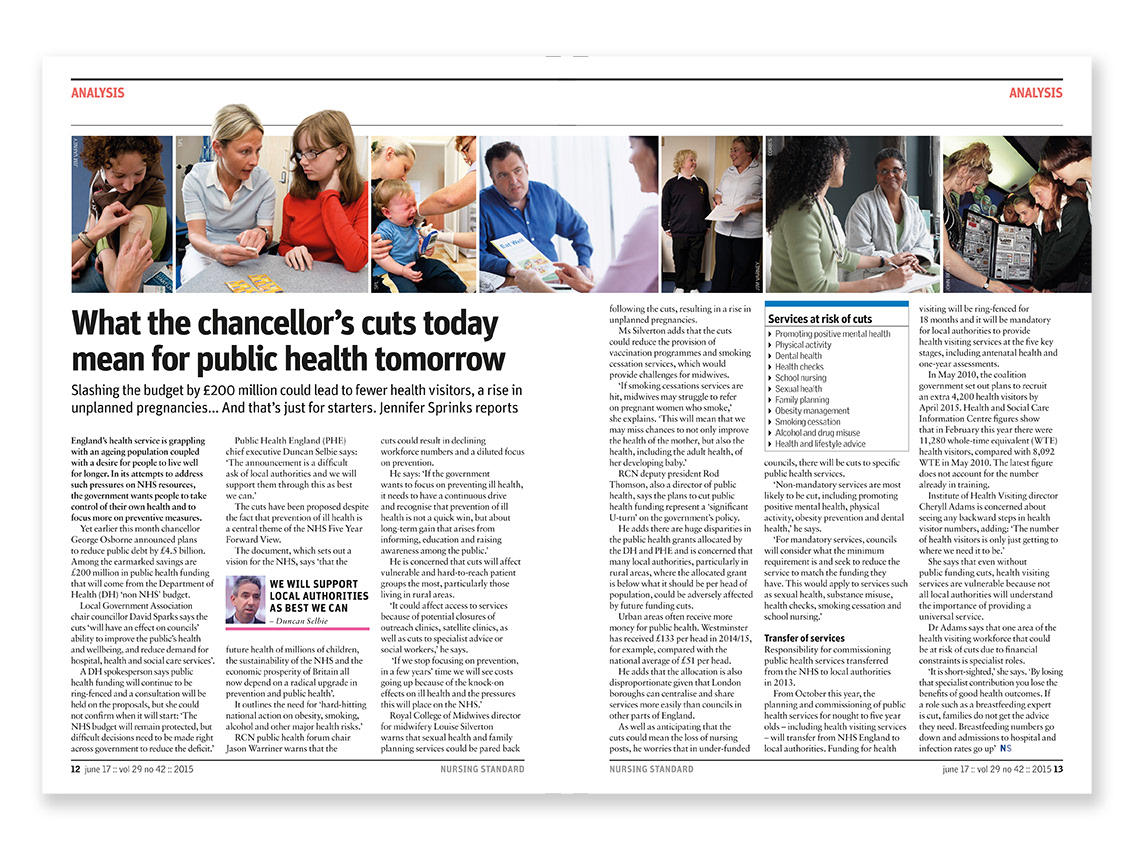 Editorial layout for Nursing Standard magazine published by RCNi. Nursing Standard is the UK's best selling nursing journal and a resource for students and fully qualified nurses.